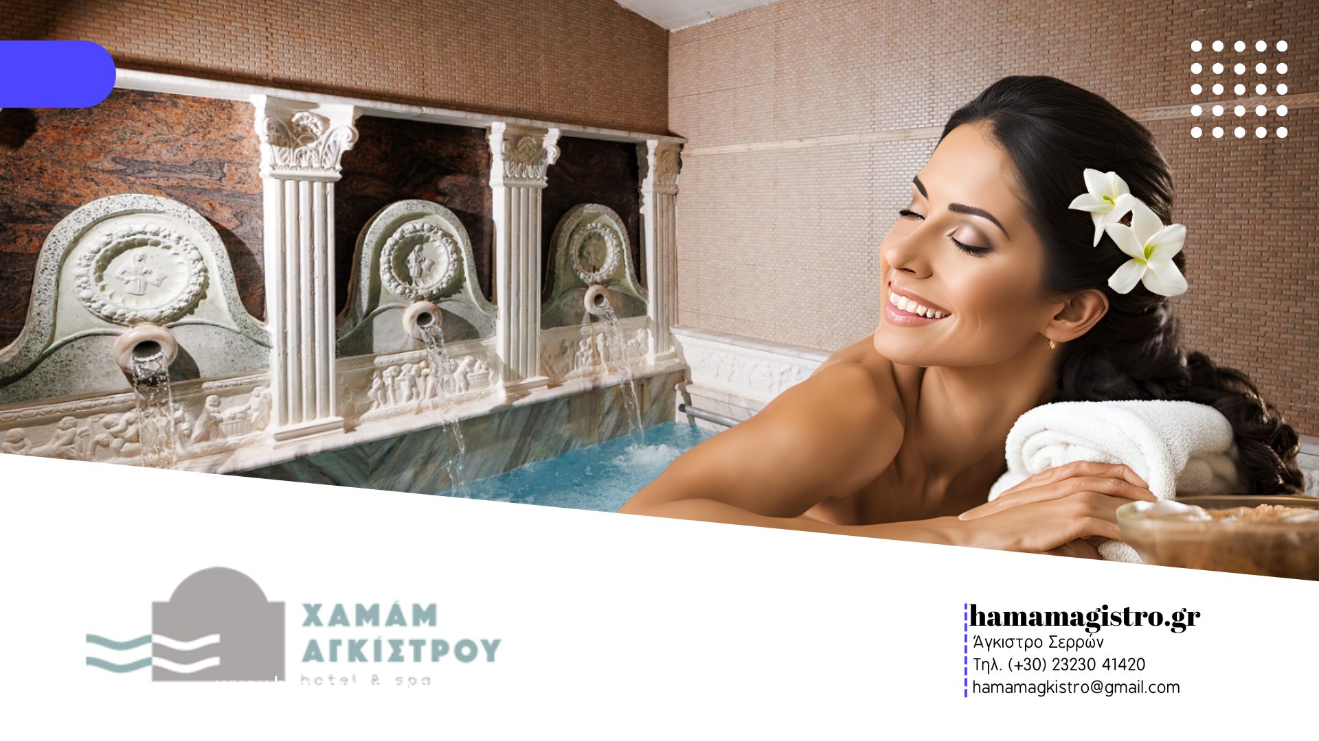Λουτρά Αγκίστρου συνδυάζουν μοναδικές ιαματικές υπηρεσίες και φιλοξενία υψηλού επιπέδου, καθιστώντας την περιοχή κορυφαίο προορισμό θερμαλιστικού τουρισμού. Το ιστορικό Βυζαντινό Λουτρό, και οι οκτώ ιδιωτικές πισίνες με ξεχωριστό σχεδιασμό προσφέρουν χαλάρωση, ευεξία και θεραπευτική φροντίδα.